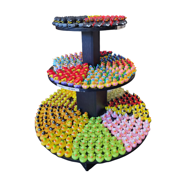 The Ducktable Medium is one of our best-selling display units. It allows a wide variety of ducks to be showcased while occupying just one square meter. The compact yet spacious design saves floor space without compromising on presentation, offering a luxurious look and an attractive assortment of ducks for sale. Ideal for stores that want maximum impact with a strong visual presence.